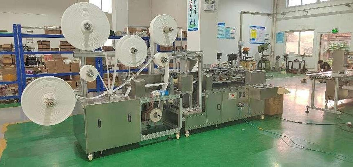 紗布卷、分離紙卷、包裝膜上機→紗布浸入凡士林(壓榨控制液量)→上下鋪紙→切斷→紗片輸出入袋→制袋→包裝 → 封口 → 輸出包裝好的成品。